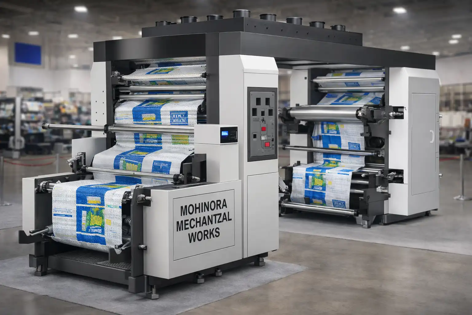 Using advanced flexographic printing technology, it delivers multi-color printing, fast-drying ink application, and stable high-speed performance. The machine is engineered to handle woven textures smoothly, ensuring consistent and reliable output.