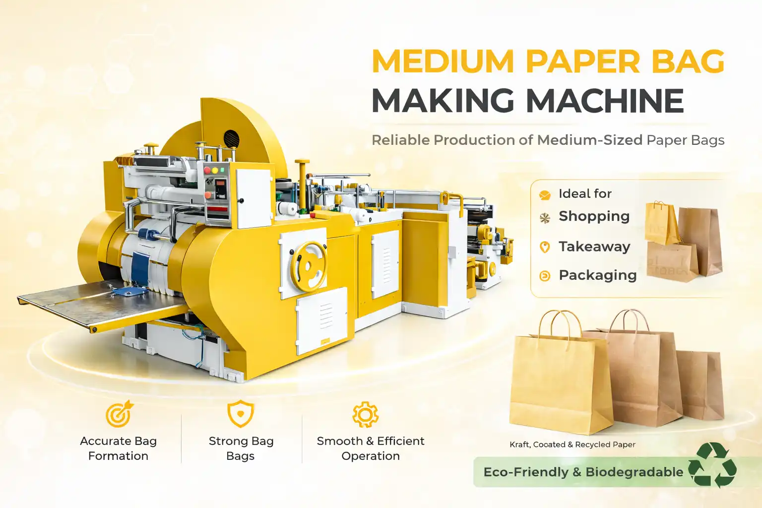 The Medium Paper Bag Making Machine is a reliable product under the Paper Bag Making Machine, designed for manufacturing medium-size paper bags used in retail, grocery, and packaging applications. The machine ensures accurate bag formation, strong structure, and consistent quality output.