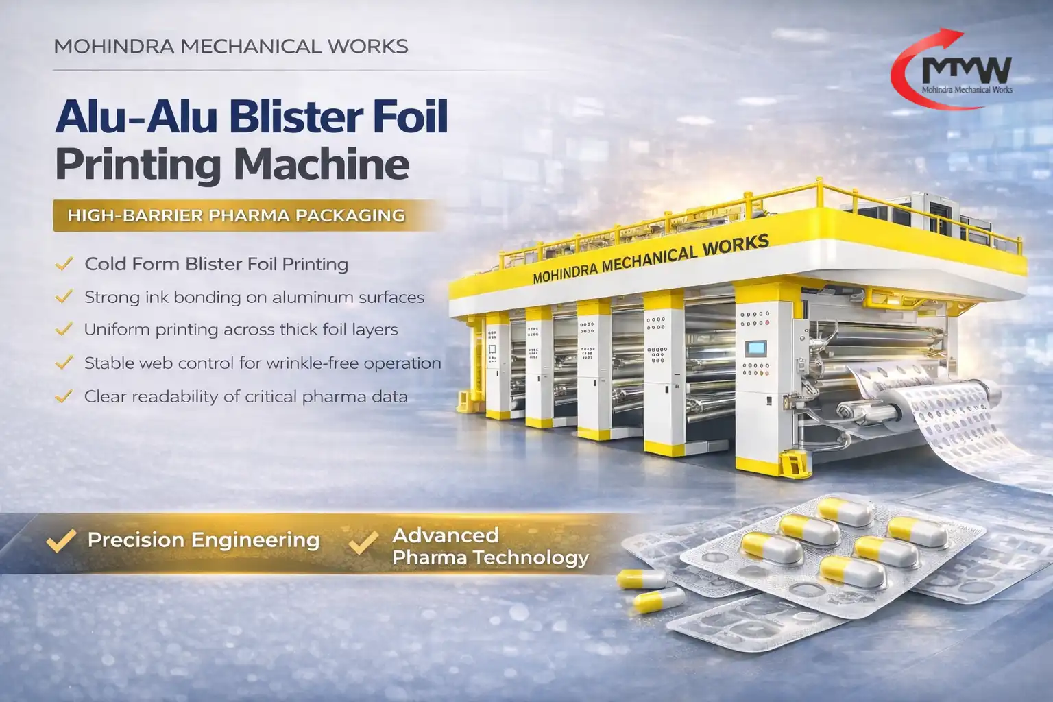The Alu-Alu Blister Foil Printing Machine is purpose-built for printing on cold form (Alu-Alu) blister foils used in advanced pharmaceutical packaging. These foils require precise handling due to their multi-layer aluminum structure and high barrier properties.