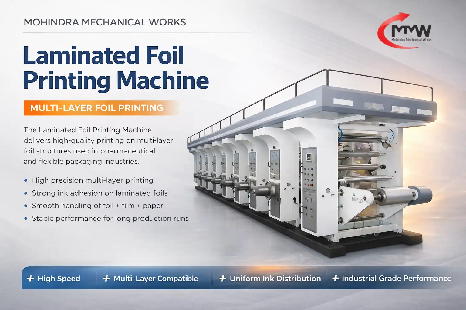 The Laminated Foil Printing Machine is designed to deliver high-quality printing on laminated foil structures used in pharmaceutical, food, and flexible packaging industries. It ensures sharp print clarity, strong ink bonding, and consistent results across multi-layer substrates.
