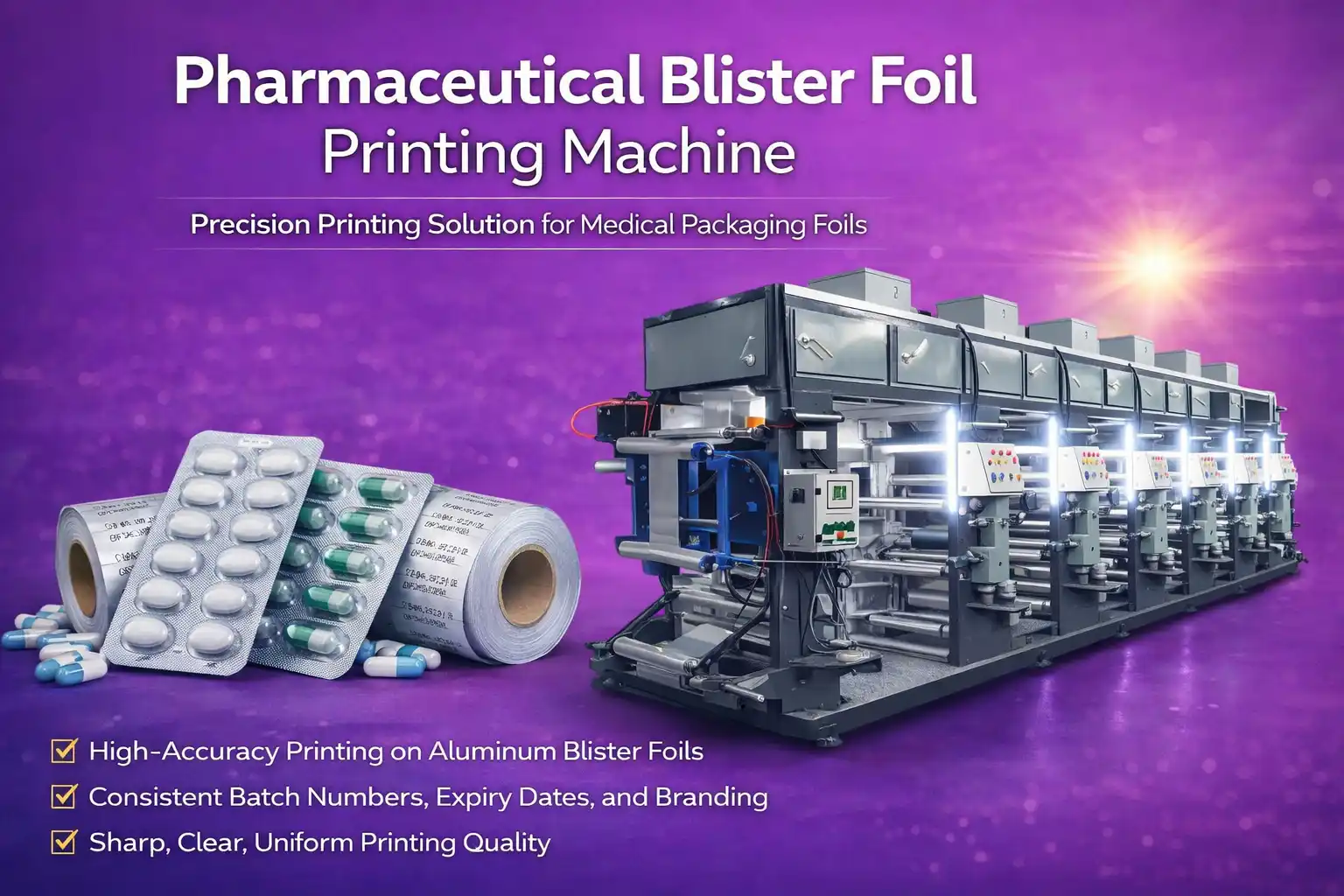 The Pharmaceutical Blister Foil Printing Machine is specially designed for high-accuracy printing on aluminum blister foils used in pharmaceutical packaging. This machine ensures sharp, clear, and consistent printing of critical information such as batch numbers, expiry dates, manufacturing details, and branding.