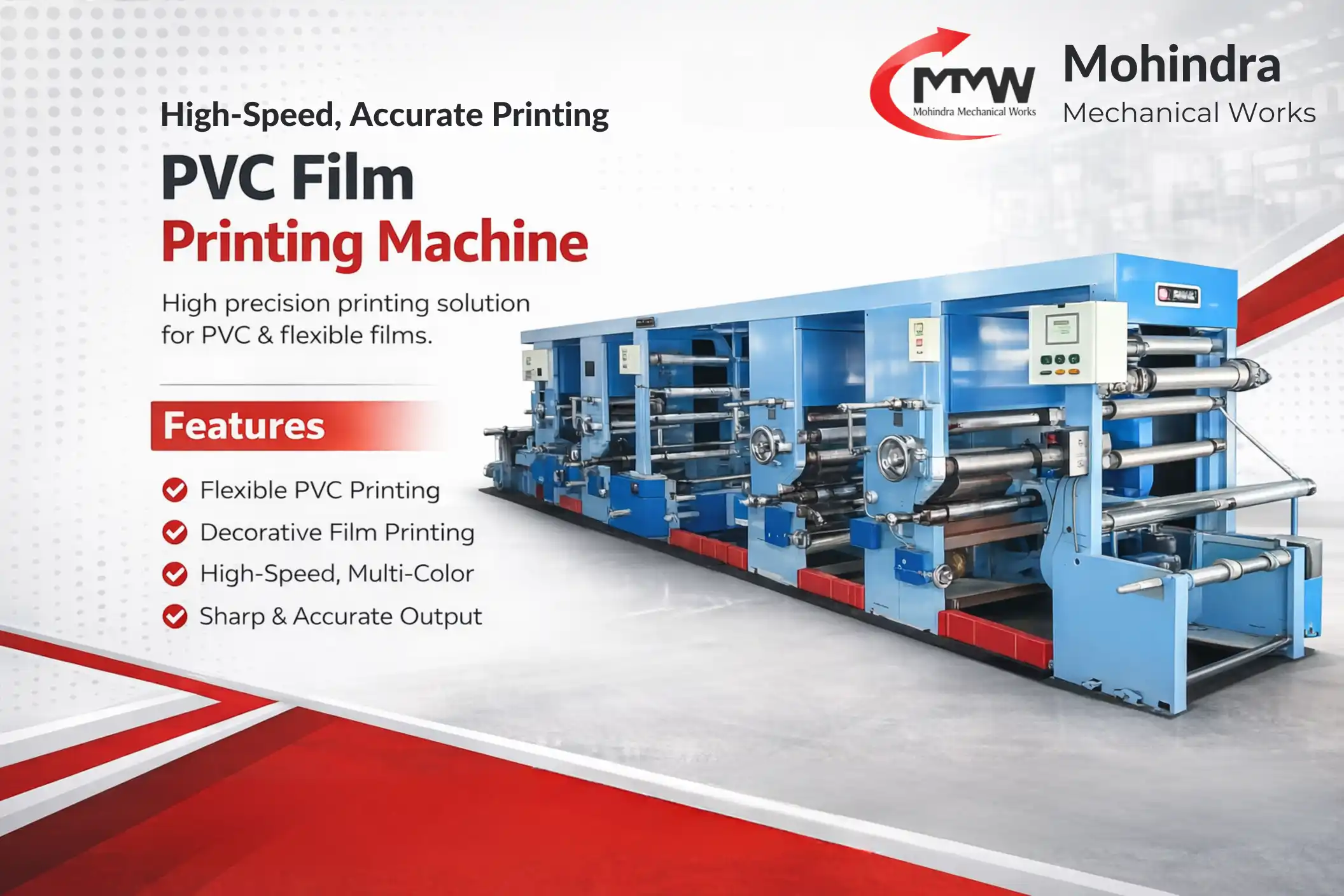 This machine is engineered to handle PVC films with precision and stability. It ensures smooth printing performance across different film thicknesses and surface types.